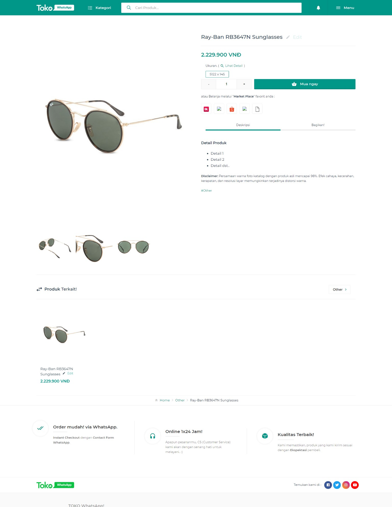 Template này gốc là TokoWhatsApp từ Indonesia được bán với giá 300k RUP. Phiên bản gốc của nó sẽ ở dạng đặt hàng qua WhatsApp. Mình đã chuyển về dạng đặt hàng qua mail cho mọi người sử dụng.